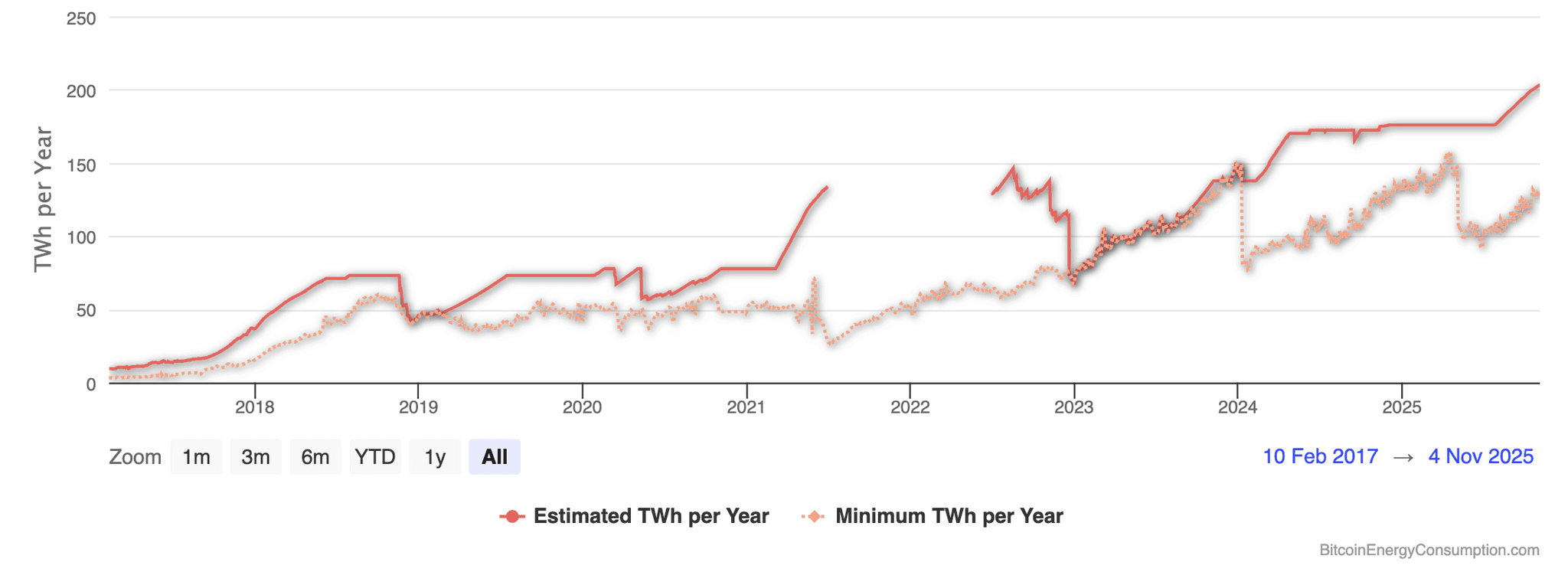 Fast forward to November 2025, and the landscape has transformed dramatically. The Bitcoin network now operates at approximately 1,082 exahashes per second (EH/s)—representing a staggering 24.9 trillion times increase in computing power. Today's mining hardware has become roughly 50,000 times more energy-efficient per unit of computing power, requiring only 46 watts to generate 1 TH/s, or about 1.1 kilowatt-hours per day. However, despite this remarkable efficiency improvement, the massive scale increase means the total network now consumes approximately 11.4 million times more energy than in 2010.